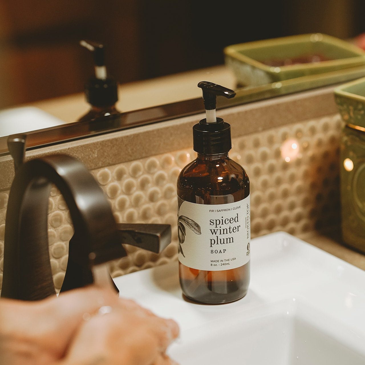 Our 8 oz liquid soap is made to create a sudsy experience that is as cleansing as it is hydrating. Available in beautiful 8 oz glass bottles, it’s the perfect accessory for your sink.