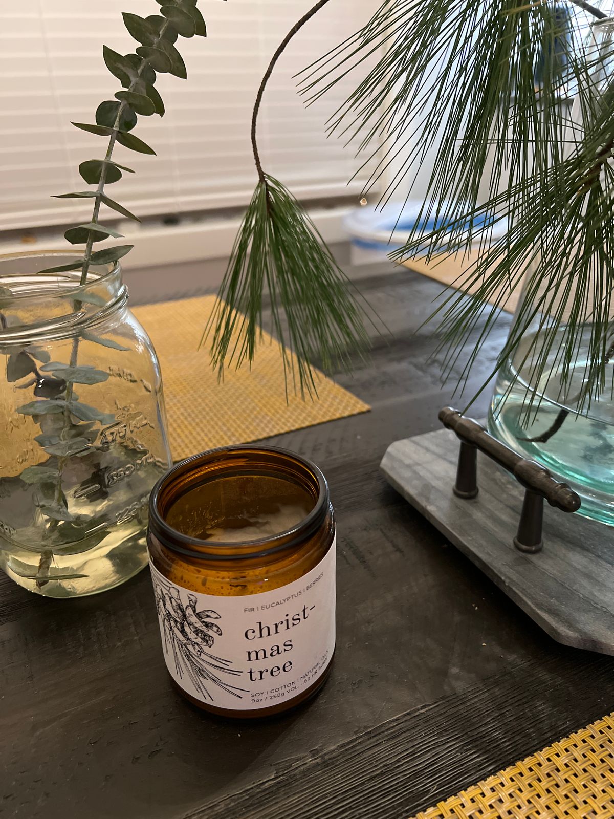 Hunting for the perfect tree through the crisp winter air of a boundless forest. Bold fir and cool eucalyptus converge with tart red berries to create this seasonal masterpiece.