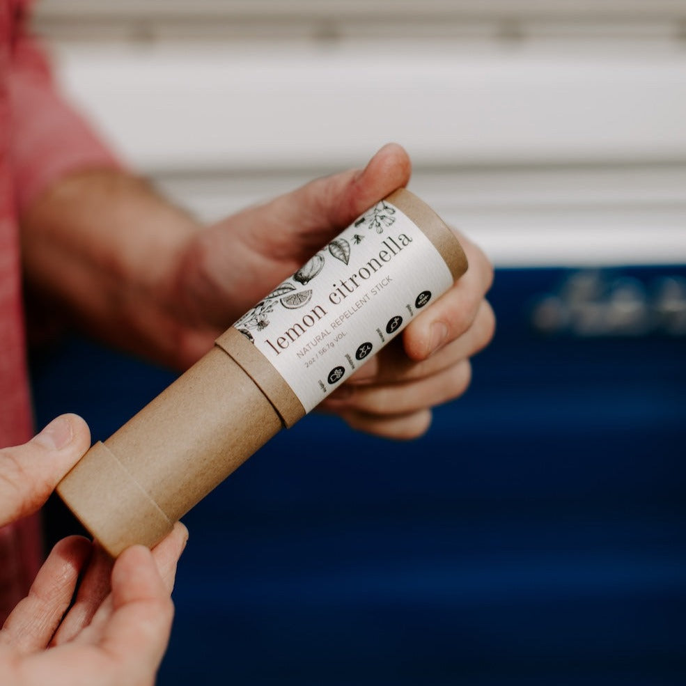 Our repellent sticks are made with coconut oil, beeswax, and vitamin E for a butter smooth application.